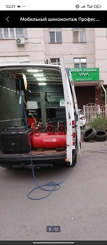 - Рабочий фургон с оборудованием (компрессор PASSAT 100 и шиномонтажный стенд).