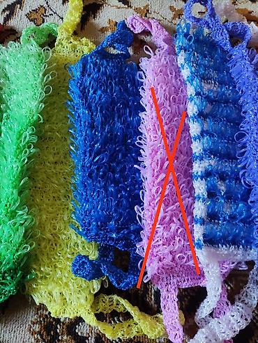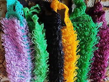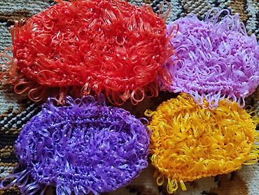 большие двойные мочалки 250 сом,одинарные и короткие двойные по 200 сом,детские на ладошку по 100 сом,отличный подарок к новому году,себе и людям