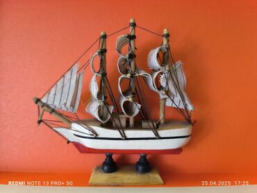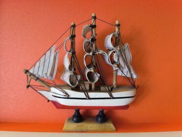 Деревянный декоративный парусник на подставке - Материал: натуральное