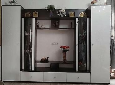 • Функциональность: продуманная система хранения включает закрытые и открытые полки, нишу для телевизора и витрину для декора и любимых предметов.