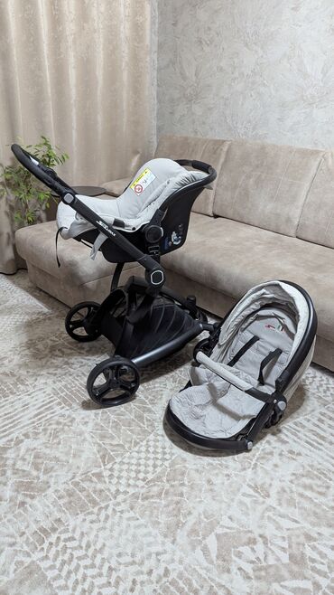 Коляска менен кошо кровать, оюнчуктарды бекер берем,аябай ынгайлуу, женил коляска, comfortbaby ден 39 000с алганбыз. Торг.есть Коляска-трансформер 2-в-1 (люлька + прогулочный блок), цвет графито...