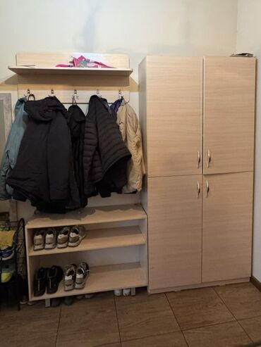 Гарнитур для прихожей, Б/у, Шкаф, Трюмо, Вешалка, ДСП, Самовывоз, цвет - Бежевый