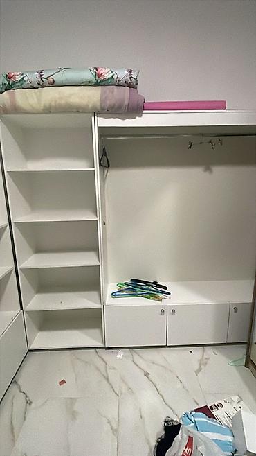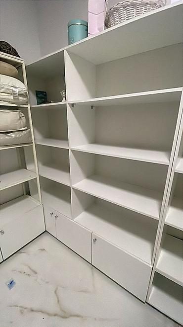- Блоки с открытыми полками разной ширины и высоты — удобно для одежды, обуви, коробок и текстиля.