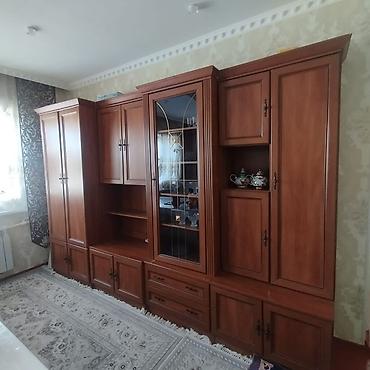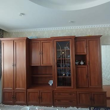 Ориентировочные габариты по фото: длина около 3,10 м; высота около 2,10м. Цвет — тёплый орех/каштан. Подойдёт для гостиной, кабинета или просторной спальни.