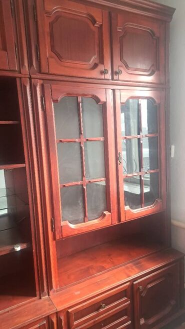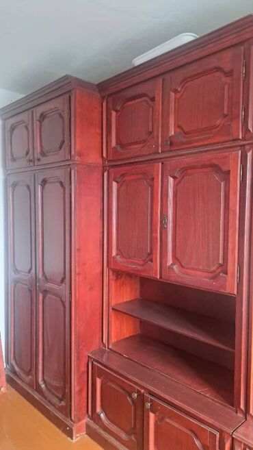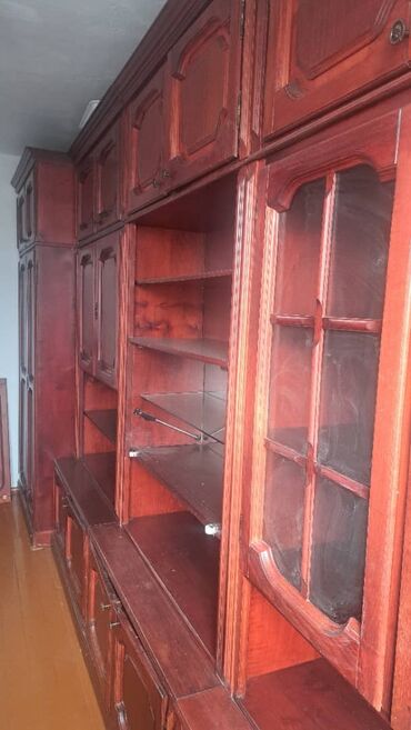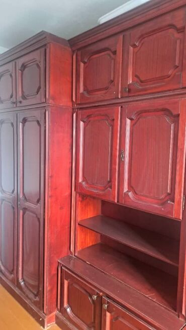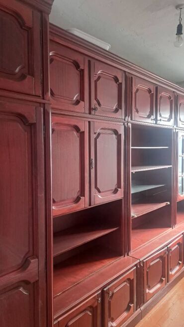 Классическая модульная стенка из массива/шпона вишни (бордово‑коричневый тон).