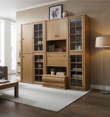 Стенка/модульный шкаф в классическом стиле, цвет светлый бук.