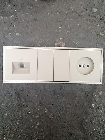 • Блок 4-постовый: модуль RJ-45 (Ethernet/компьютер), два пустых места под заглушки/переключатели/розетки, одна силовая розетка Schuko (с заземляющими контактами).
