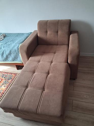 Продаю угловой диван-трансформер с креслом. В комплекте диван, кресло и пуф с ящиком (см. фото). Легко раскладывается, металлический механизм. Материал — прочный серо-графитовый велюр. Удобные поду...
