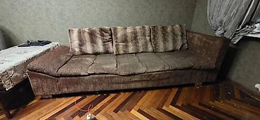 Длинный модульный диван-трансформер, обитый мягким велюром темно‑коричневого цвета. Особенности: - Очень большая посадочная зона — многосекционный, рассчитан на большую семью или компанию. - Модул...