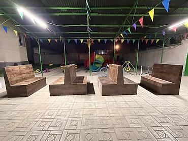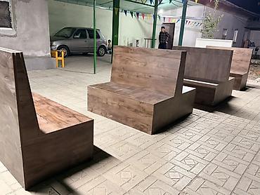 - Формат: двухсторонние диваны‑скамьи с общей спинкой, отдельные модули.