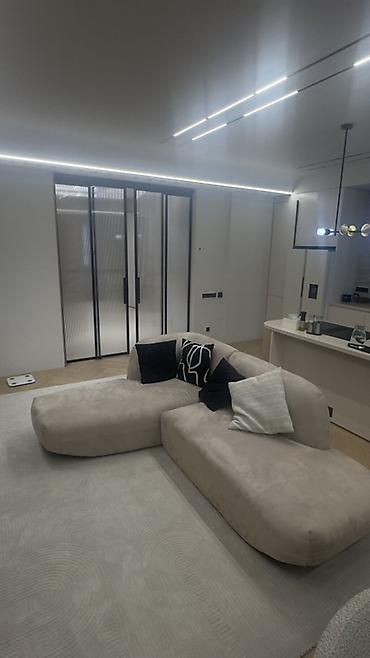 - Дизайн: минимализм/современная классика, мягкие плавные линии без видимых ножек. Отлично смотрится в центре комнаты — аккуратная спинка и бока.