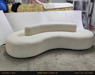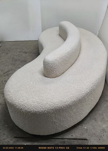 Диван в стиле модерн с плавными органическими линиями - Форма: асимметричный, волнообразный силуэт с мягко закруглёнными краями — акцентный элемент для гостиной, холла или зоны ожидания. - Обивка:...