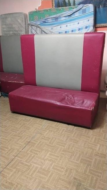 Диван-банкетка для кафе/ресторана, модульный - Тип: пристенный диван с высокой спинкой из трех мягких секций - Обивка: износостойкий кожзам/винил, цвет — светло-оливковый - Основание: массив/шпон ...
