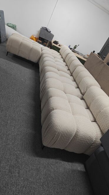 Угловой модульный диван большого размера в современном стиле. - Конфигурация: Г‑образная, несколько секций, центральный модуль с углом. Глубокая посадка, широкие подлокотники. - Обивка: мягкая в...