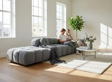 Модульный мягкий диван с глубокой посадкой в стиле «пух»/«marshmallow».