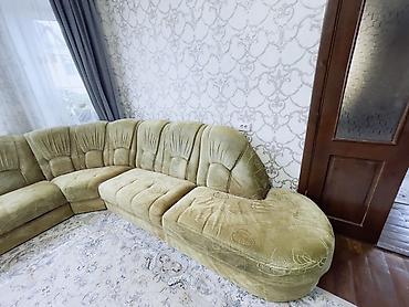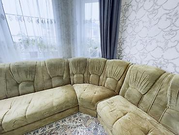 - Обивка: бархатистая ткань оливково‑зеленого оттенка с декоративным тиснением (листочки). Мягкие подушки спинки с вертикальной простёжкой и поддержкой поясницы.