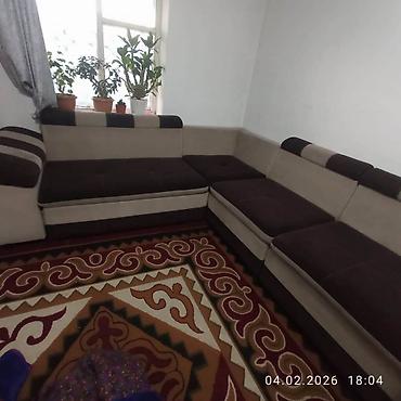 Угловой модульный диван, тканевая обивка (замша/микрофибра) теплого коричневого оттенка. Основные особенности: - Г-образная компоновка, глубокая посадка. - Несколько секций/модулей: можно перестав...