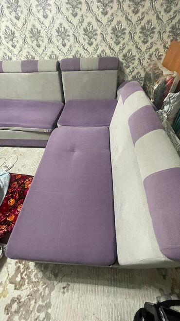 Большой модульный угловой диван Г‑образной/П‑образной компоновки. Б/У Особенности: - Состоит из нескольких секций, можно переставлять и формировать нужную конфигурацию: длинный угол, П‑образную зо...