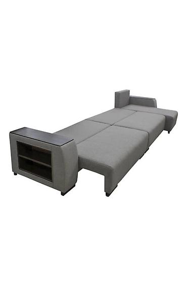 Угловой модульный диван с раскладным механизмом Г‑образный диван из нескольких модулей с угловой секцией; широкие подлокотники с накладками под дерево/ЛДСП. - Раскладной элемент: центральная секци...