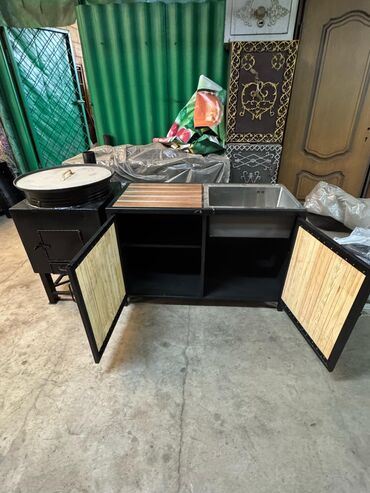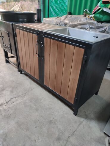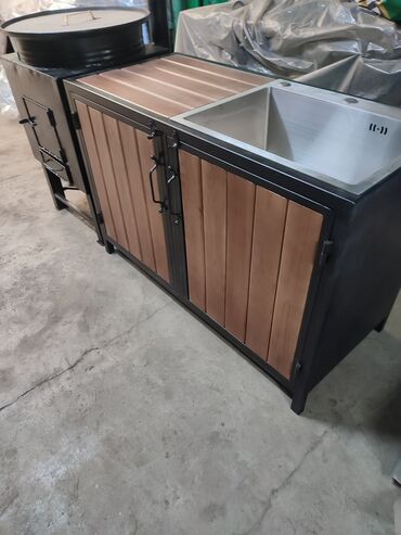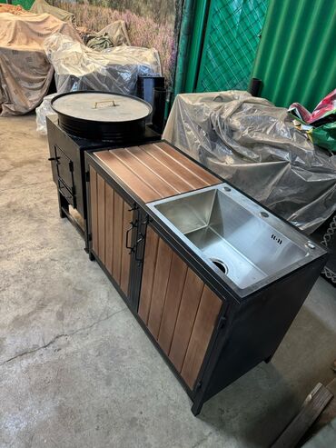 барбекю зона общая длина 185 см ширина 49 диаметр внутри внутренней печки 43 см тумбочка ширина 48 см глубина тоже 48 см мангал длина 74 ширина 32 внутренний по наружке 35 высота 74 см очень удобны...