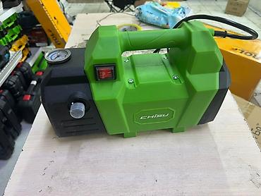 Мойка высокого давления CHISU в зелено-черном корпусе. Оснащена ручкой для удобной переноски и манометром для контроля давления. Подойдет для очистки небольших участков, садовой мебели или автомобиля.