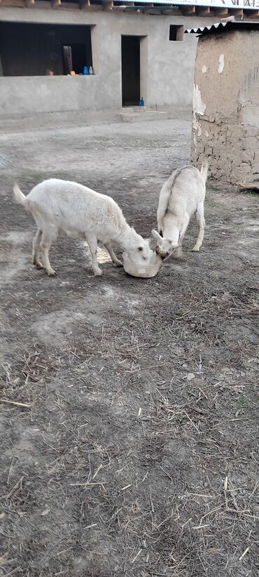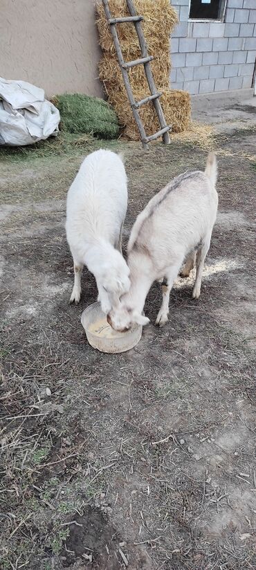 - Порода: местный молочный тип (светлая/кремовая масть, у одной козы вдоль хребта выражённый тёмный ремень).