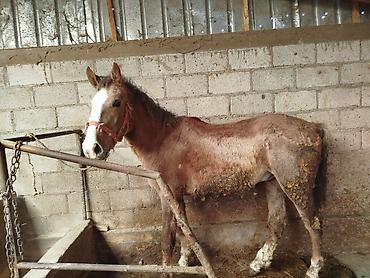 Лошадь молодая, гнедо-рыжая масть с широкой белой проточиной на морде и белыми отметинами на ногах. Статная, высокая, крепкий костяк и выраженная шея. В стойле спокойная, стоит на привязи, адекватно реагирует на человека. Используется недоуздок с верёвочным поводом.