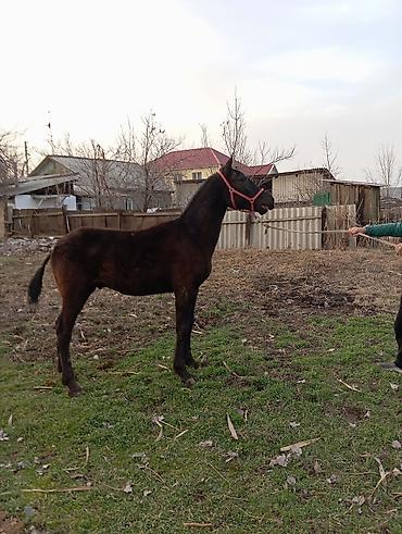 Молодая лошадь темно-гнедой масти с аккуратной головой и выразительным глазом. Статный корпус, высокая шея, ровная спина, крепкие ноги с правильной постановкой. На фото — в красном недоуздке, спокойно стоит на поводу, послушная при ведении.
