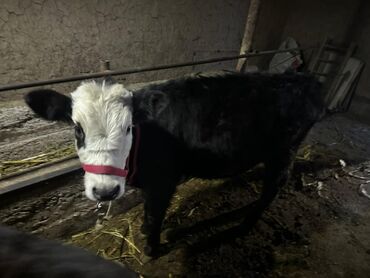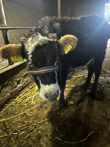 Телёнок (бычок), чёрно-белой масти, с бирками идентификации в ушах. Возраст визуально — несколько месяцев. Компактное телосложение, прямые ноги, широкий лоб. Содержится на привязи в стойле, кушает ...