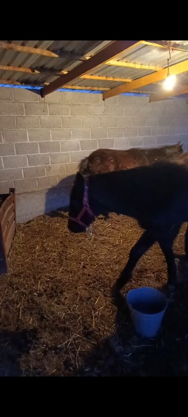 Молодые лошади (жеребята) в стойле. Описание: - Порода: беспородные/смешанные (визуально разный окрас — гнедой и вороной). - Возраст: ориентировочно молодой возраст (жеребята/подростки по типу кор...Договорная