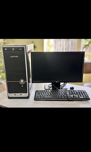 Настольный компьютер в комплекте с монитором и периферией.