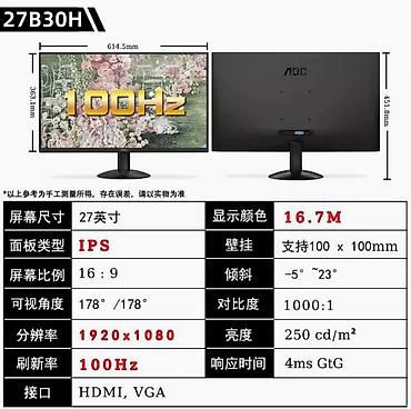 Монитор "AOC" 27дюйм, 120 Гц (27В30Н) Монитор AOC 27B30H Black: высокое качество изображения и комфорт для глаз** Ищете надёжный монитор для работы и развлечений? AOC 27B30H — отличн...