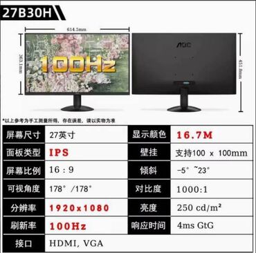 Продаю монитор AOC 27B1H. без засветов и битых пикселей. Монитор в идеальном состоянии! характеристики монитора: диагональ: 27" разрешение: 1920:1080 FHD Частота обновлений: 60грц Экран: Матовый ти...