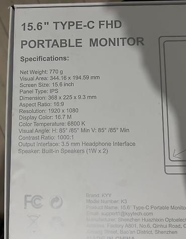 В комплекте: Сам монитор,чехол книжка-подставка, USB-C кабель, mini hdmi - hdmi кабель.