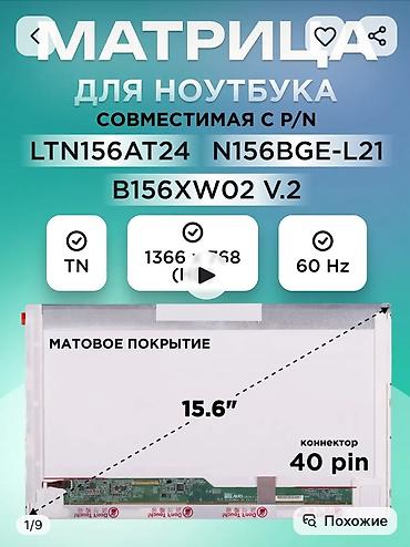 Матрица для ноутбука 15.6" Характеристики: - Диагональ: 15.6" -