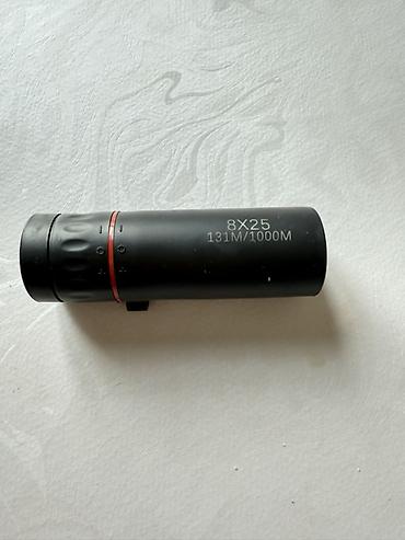 Компактный монокуляр с 8-кратным увеличением и объективом 25 мм. Поле зрения: 131 м на дистанции 1000 м (указано на корпусе). Легкий цилиндрический корпус с рельефным кольцом фокусировки и красным разделительным кольцом. На окуляре — мягкий наглазник для комфортного наблюдения, на объективной стороне — ушко/крепление для ремешка или шнурка.