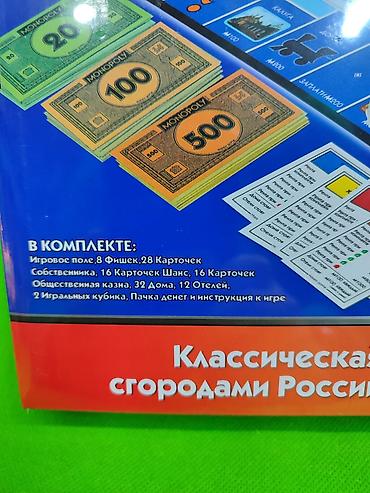 Комплектация товара: 8 фигурок, 28 карточек собственника, 16 карточек шанс, 16 карточек общественная казна, 32 дома, 12 отелей, 2 игральных кубика, пачка денег и инструкция к игре👍