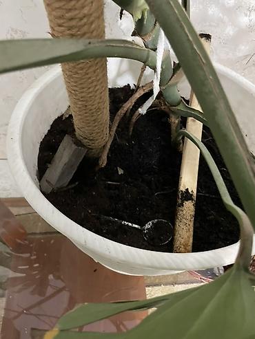 - Мощные воздушные корни, установлен моховой/джутовый опорный столб для направленного роста.