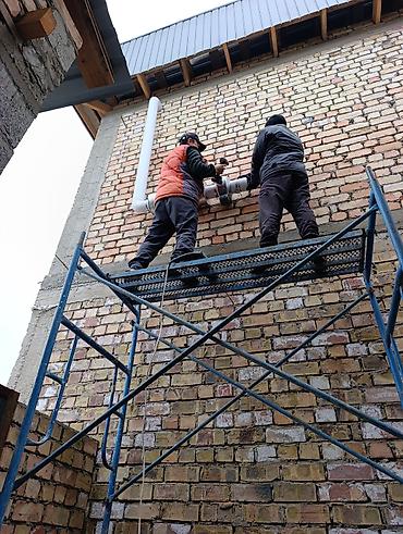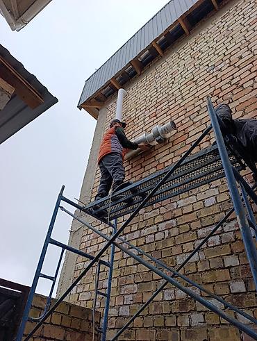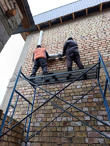 - Установка наружных дымоходов и воздуховодов на фасадах из кирпича и блоков