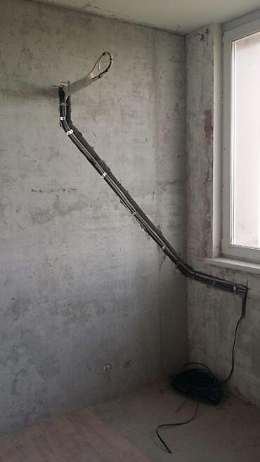 На объекте мы делали закладки фреоновой трассы без монтажа кондиционеров. Использовались современные инструменты (штроборез в том числе) для формирования аккуратной штробы и качественной магистрали.