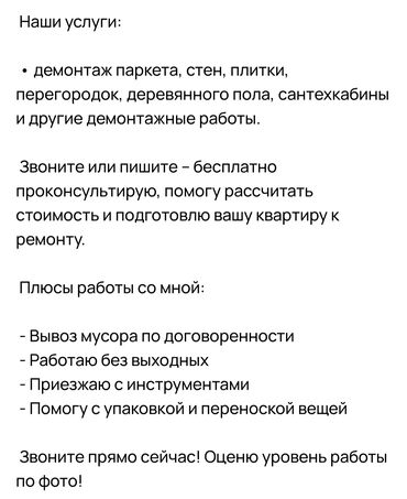 Снос стен | Железобетонная стена | Зачистка от старых обоев | Демонтаж кафельной плитки | Крыша из шифера Больше 6 лет опыта