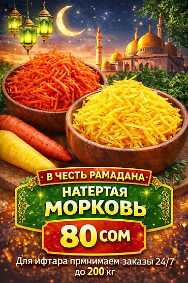 Ифтар үчүн жаңы тууралган сабиз кичине жана чоң көлөмдө 4кгдан 200 кгга чейин заказдарды кабыл алабыз 24/7 .