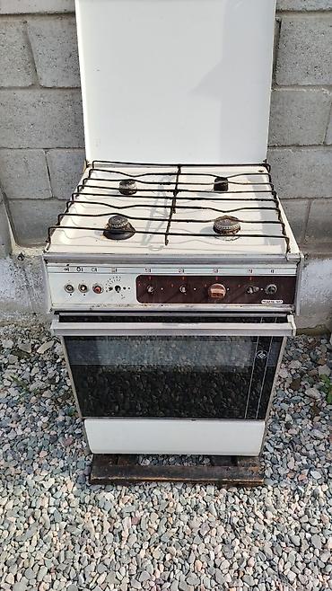 - Газовая плита с 4 конфорками под решёткой; откидная крышка. Духовка с широкой стеклянной дверцей и фронтальной панелью управления. На панели расположены механические переключатели режимов, терморегулятор и индикаторы. Маркировка: Модель 1457.