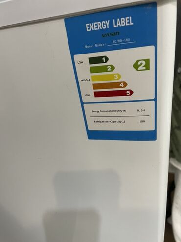 - Объём: 180 л (наклейка Refrigerator Capacity 180 L).