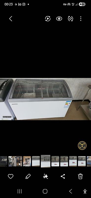 Морозильный ларь-витрина AUCMA с раздвижными стеклянными крышками.