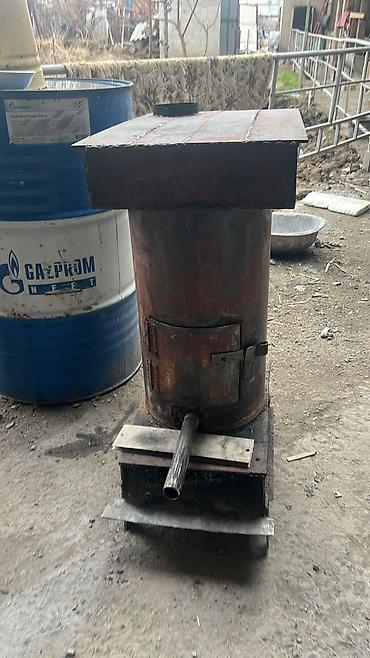 Металлическая печь длительного горения (самодельная). Банянын печкасы Описание: - Материал: толстостенная сталь, сварная конструкция. - Топочная камера с дверцей на петлях и регулировкой поддувала...