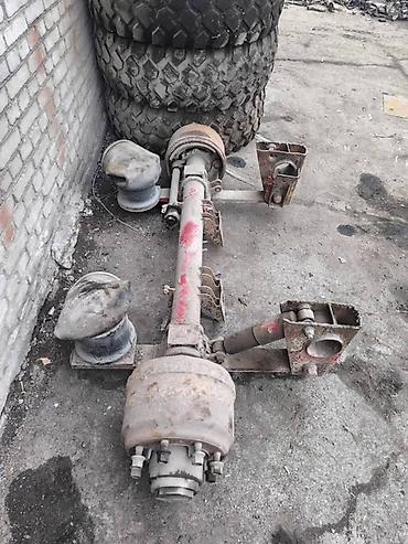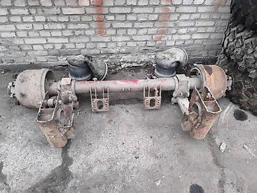 - Полная ось в сборе для тяжелого прицепа/полуприцепа: балка, ступицы, тормозные барабаны, кронштейны крепления, реактивные штанги/кронштейны, пневмобаллоны.