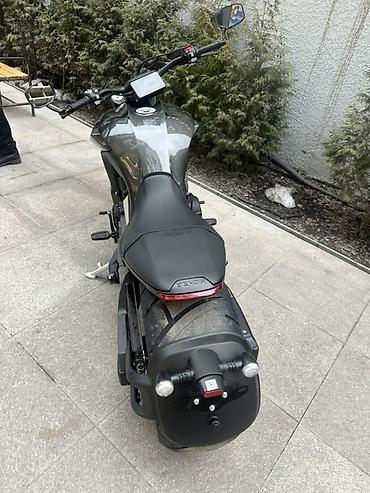 - Привод цепью, массивный маятник, центральная подножка и складные пассажирские подножки.