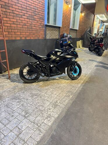 Kawasaki Ninja (черный матовый) — спортивный дорожный мотоцикл с пластиковым обвесом и агрессивной оптикой.
