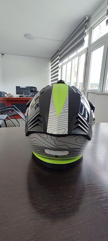 - Тип: интегрированный шлем с удлинённым козырьком в стиле эндуро/адвентур, прозрачный откидной визор.